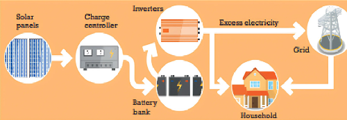 A solar photovoltaic (PV) system mounted on a rooftop of a building is a minipower plant